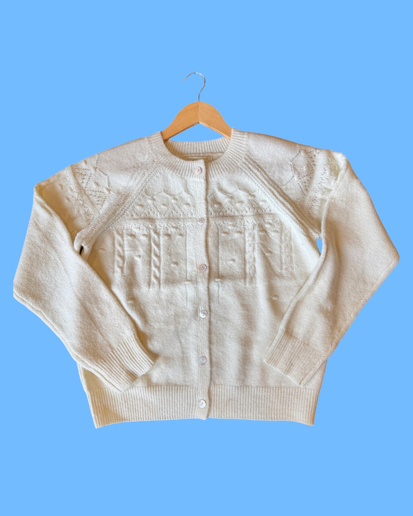 Textured Button Down Cardigan in Ivory
