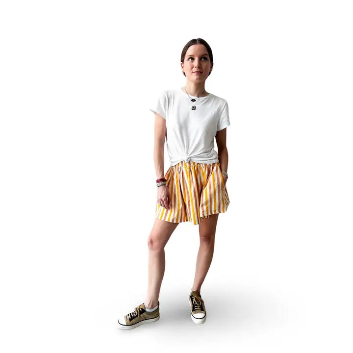 This versatile skirt will quickly become your go-to with its bold stripe print in vibrant hues.
