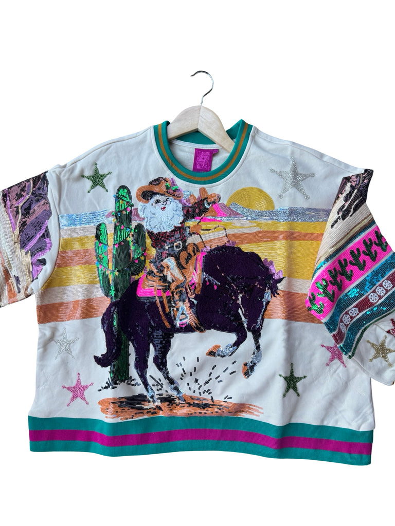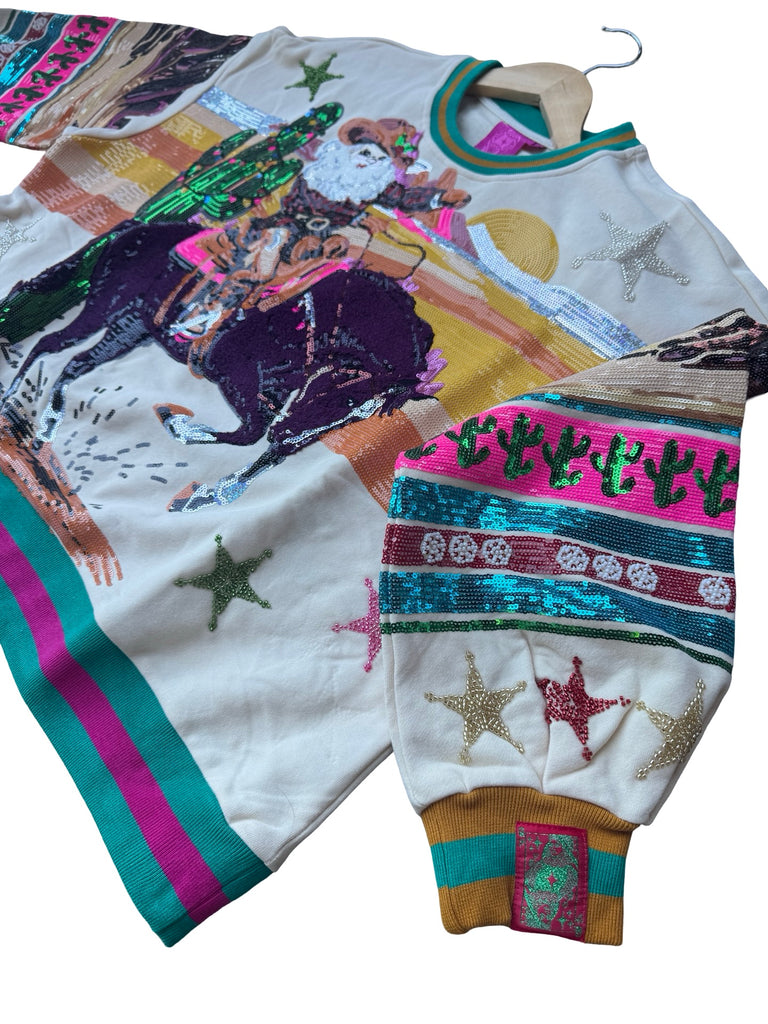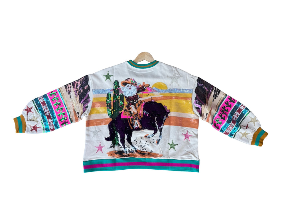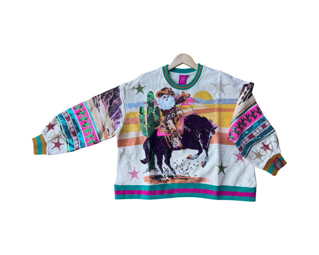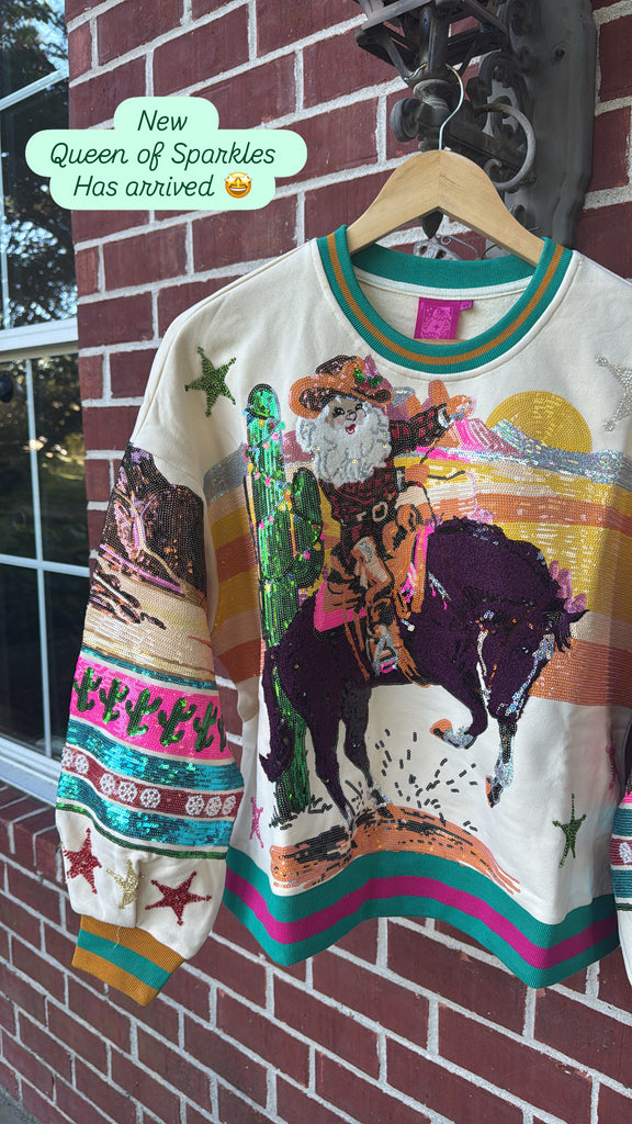 Queen of Sparkles Vintage Cowboy Santa Sweatshirt