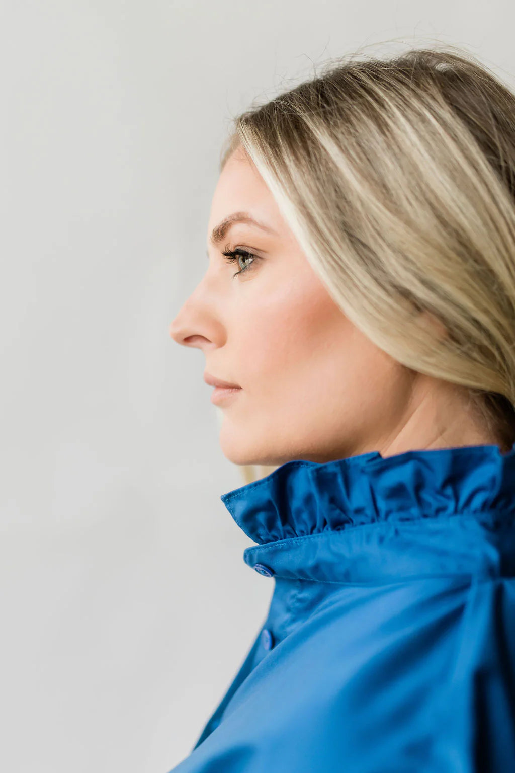 Short Sleeve Ruffle Shirt in Bright Blue by Heidi Houston