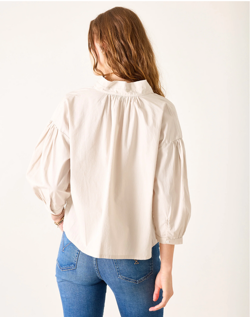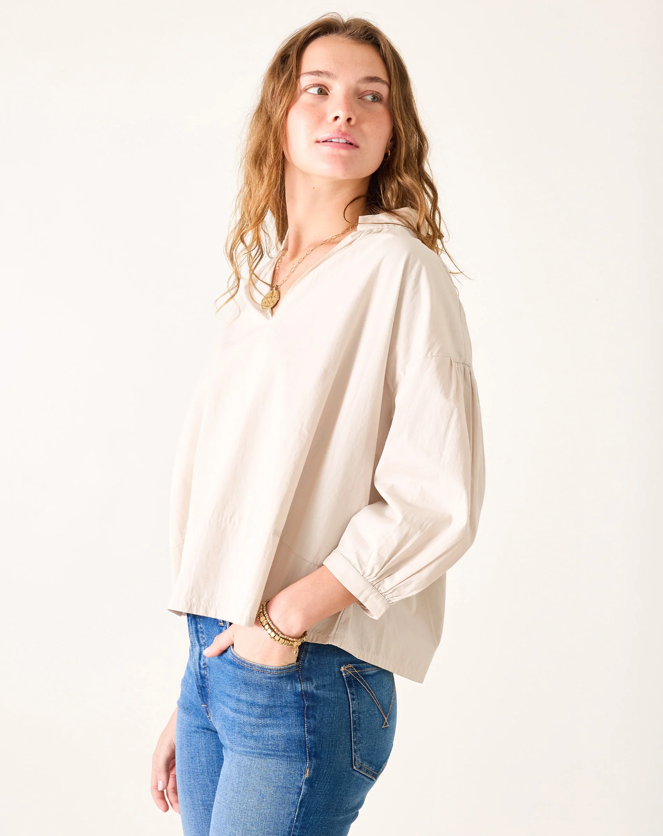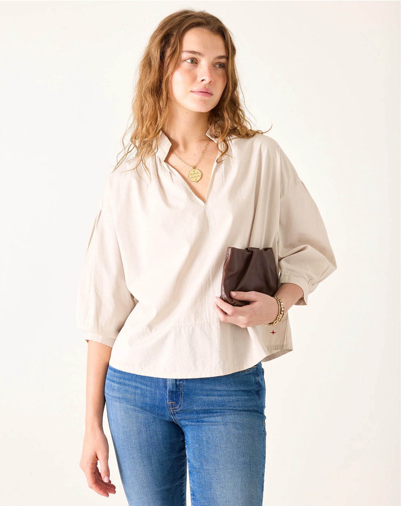 Meet your new favorite blouse—the Sonnet Top. This piece features a gathered v-neckline and a-line silhouette met with elegant blouson sleeves that gather at the cuff for shape. You'll carry this top into several seasons and from day into night.
