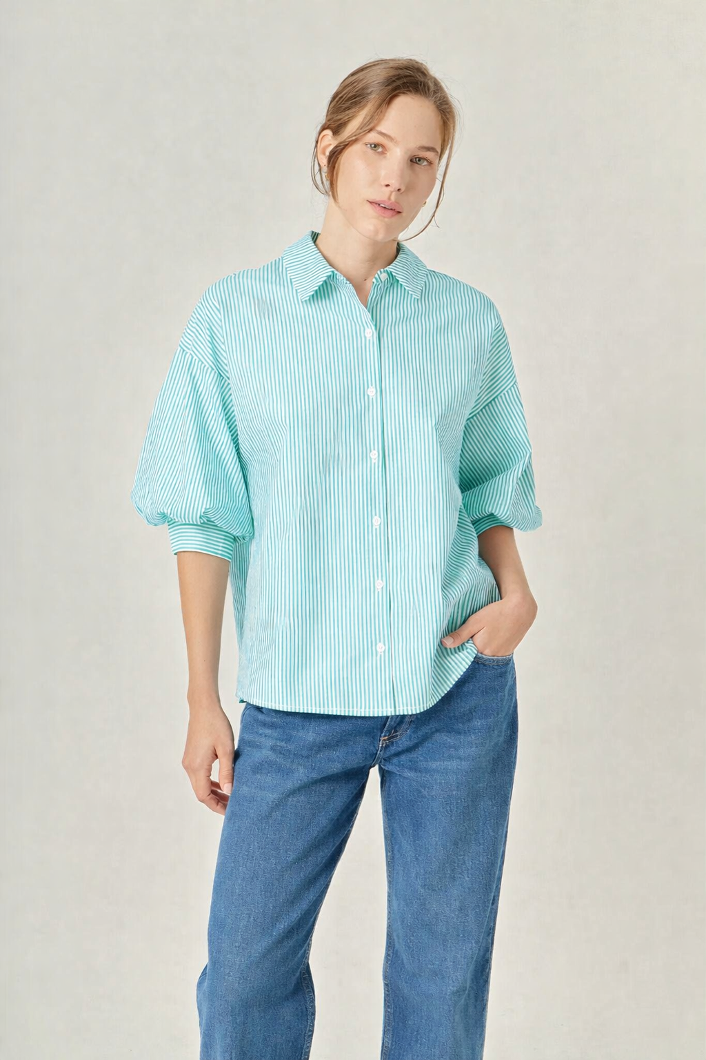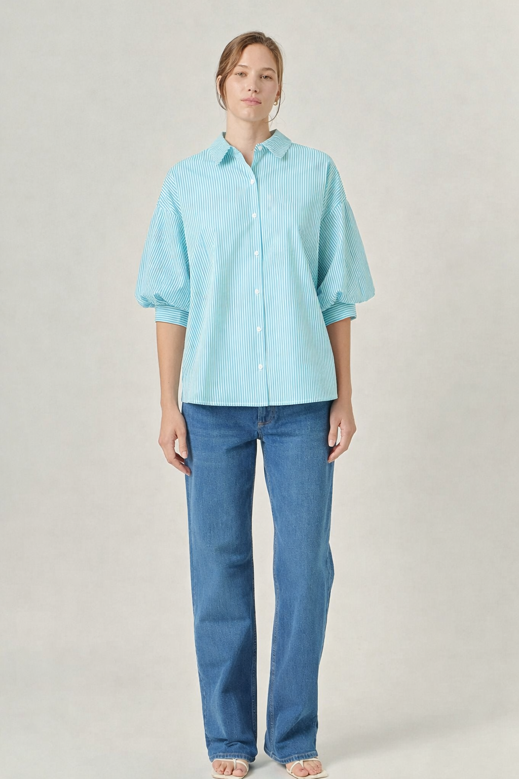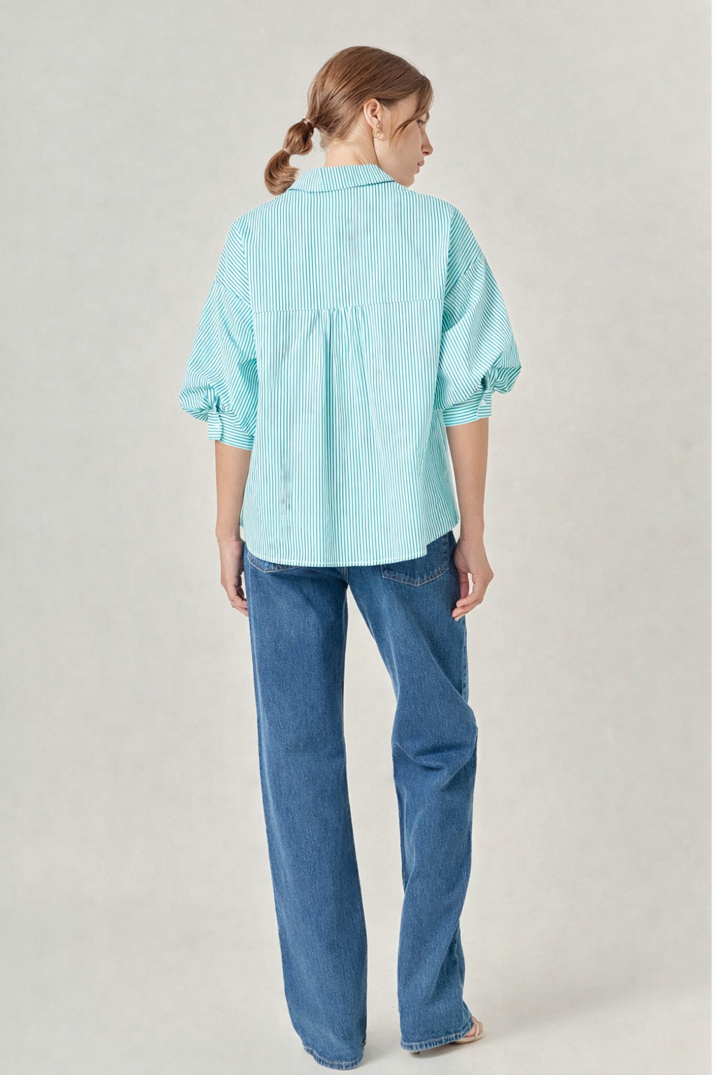 A closet classic with a modern twist, our Striped Button Down Shirt is your new go-to for effortless polish. Crafted from soft, high-quality fabric, it features timeless vertical stripes, a crisp collar, and a relaxed silhouette with drop shoulders and roomy sleeves. Whether you're styling it for work, weekends, or layering year-round, this versatile top brings instant sophistication to any look.