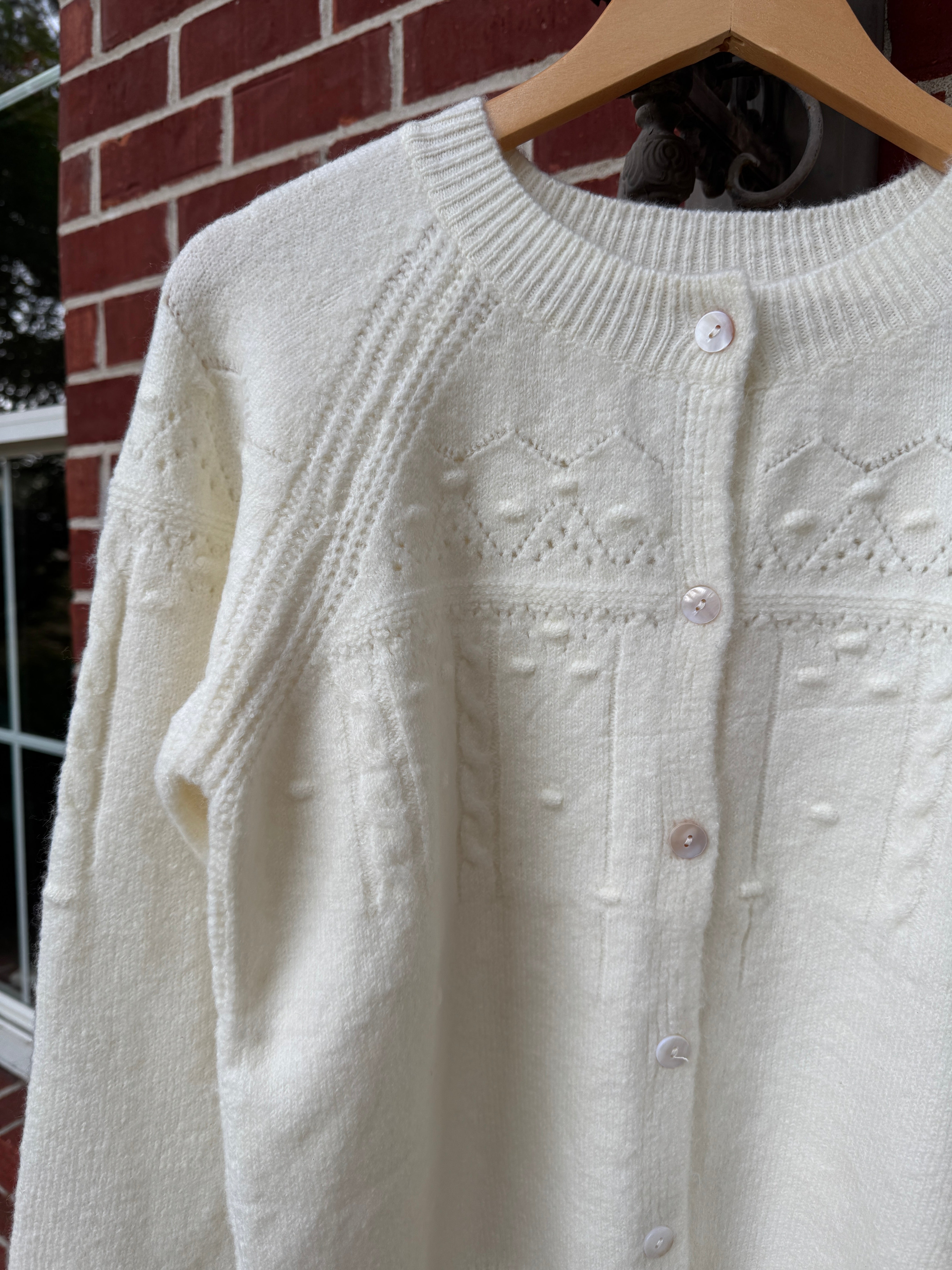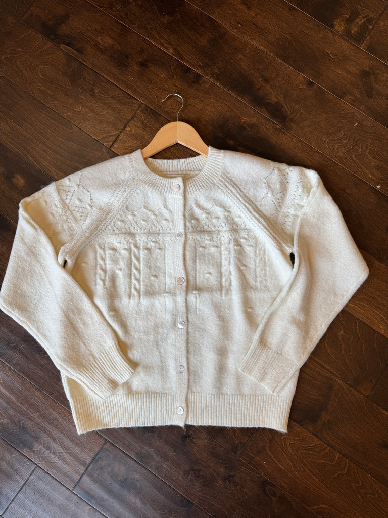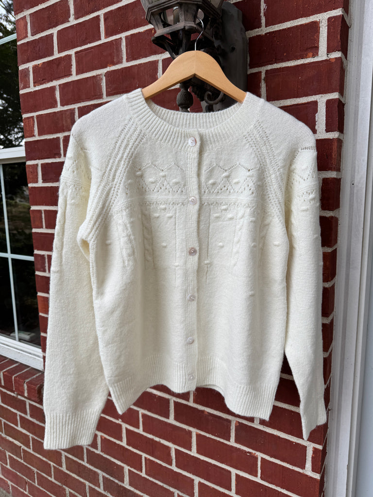 Textured Button Down Cardigan in Ivory