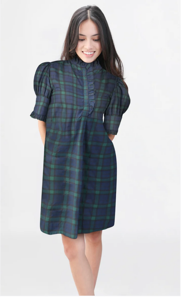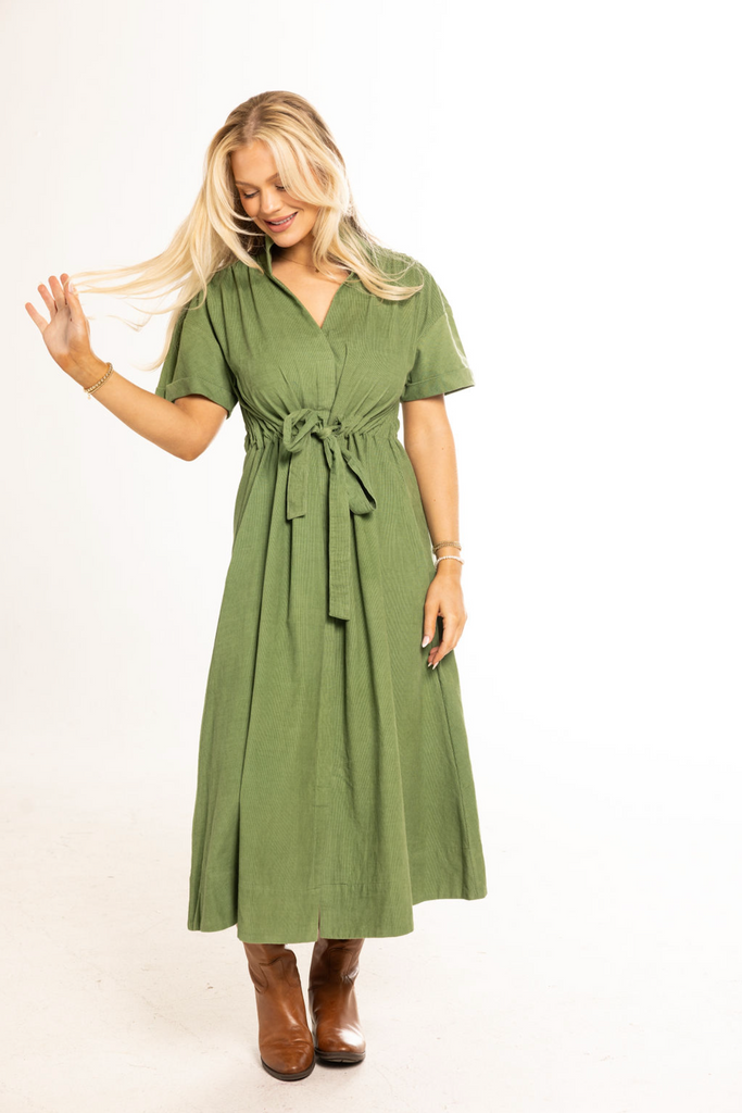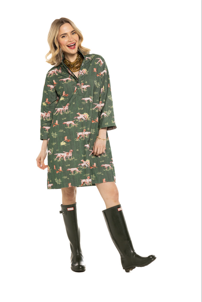Arden Dress in Dogs on the Hunt in Green Cord by Holly Shae