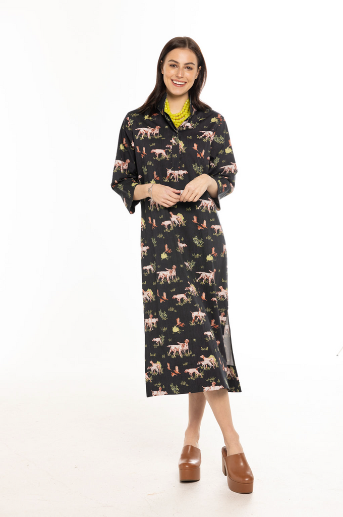 Grace Dress in Dogs on the Hunt in Black by Holly Shae