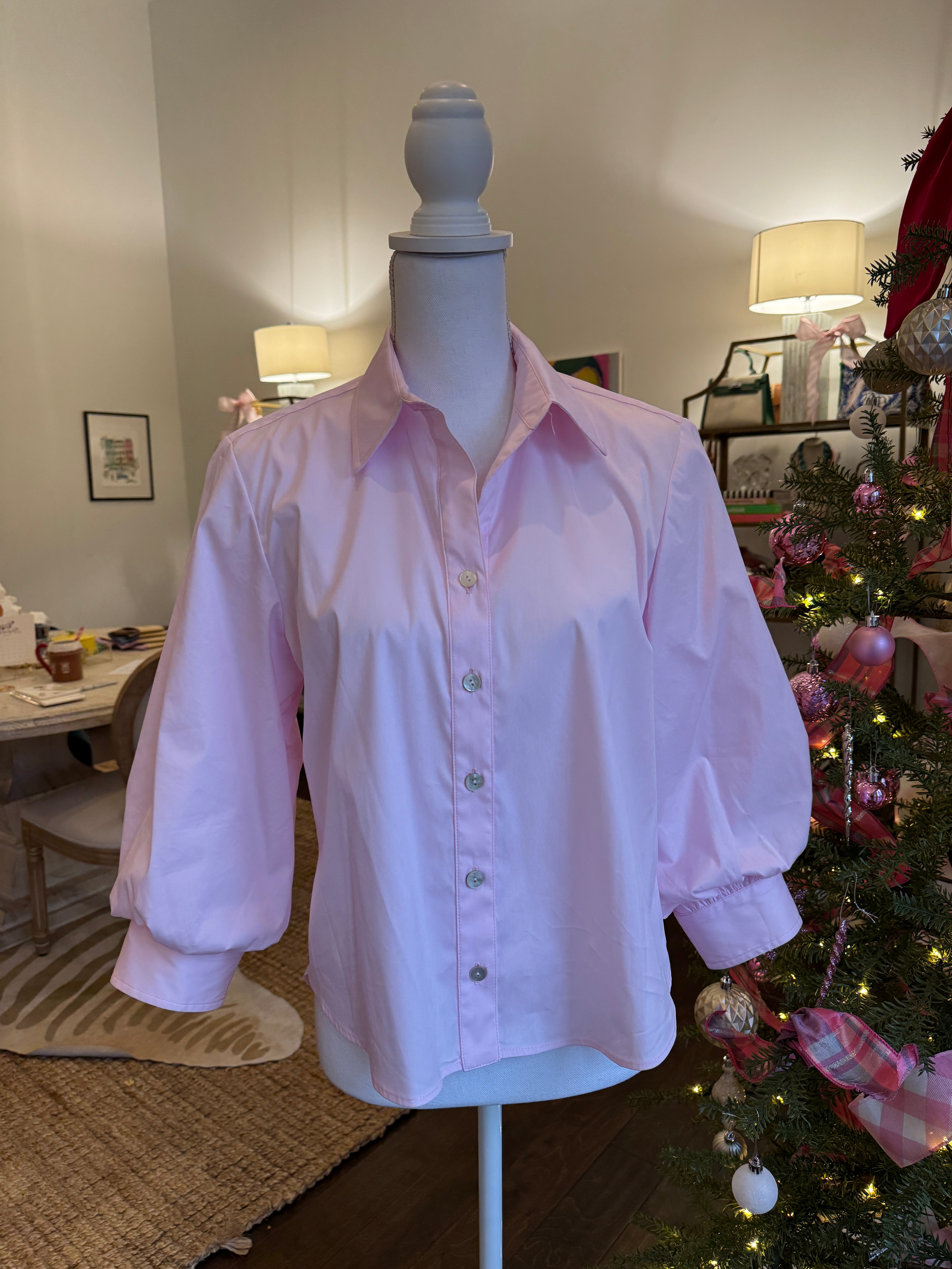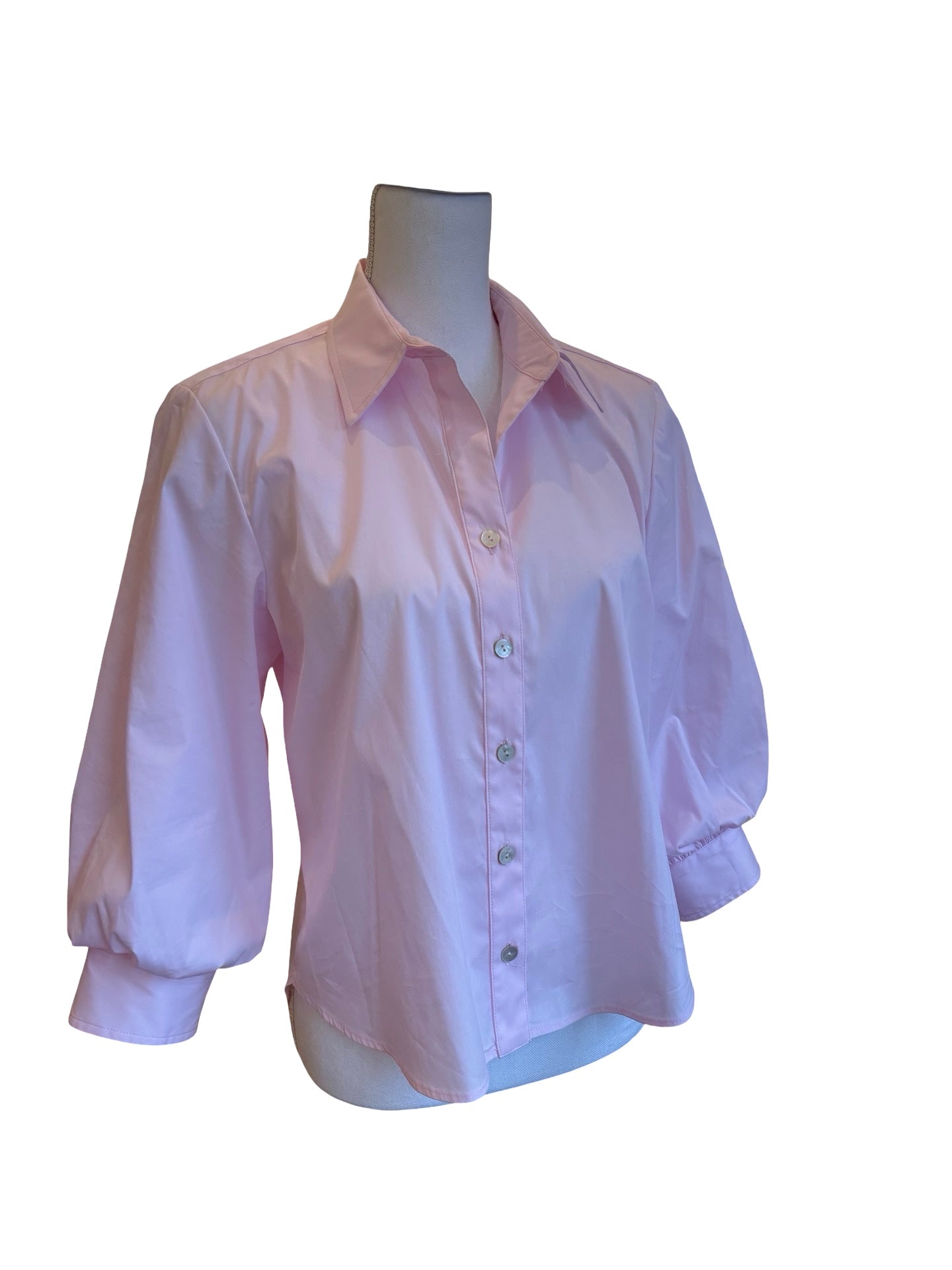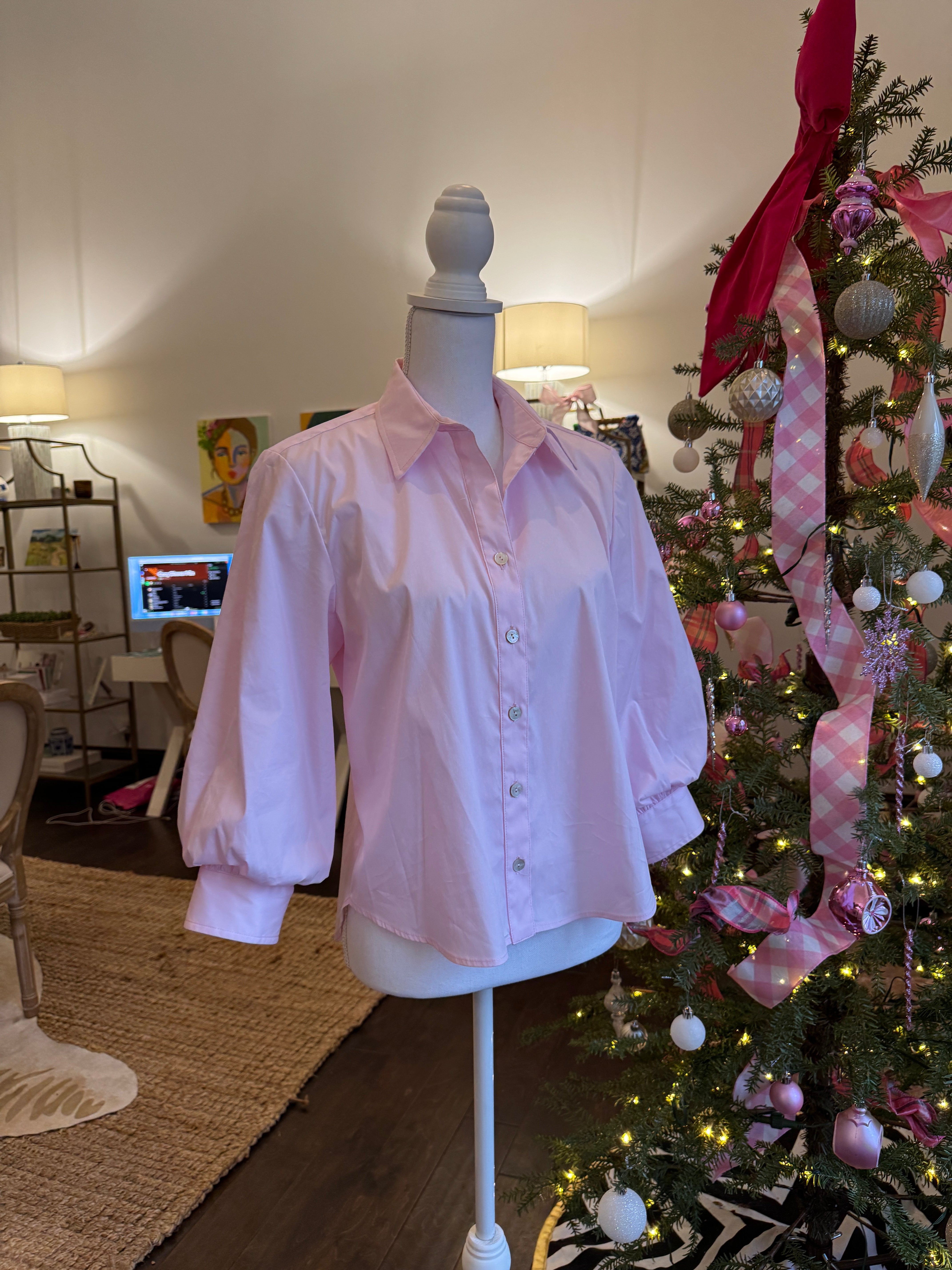 Elevate your everyday wardrobe with this charming button front blouse from Finley, designed in a soft pink hue that flatters every complexion. The delicate puff sleeves add a touch of feminine sophistication and movement, creating visual interest without overwhelming your silhouette.