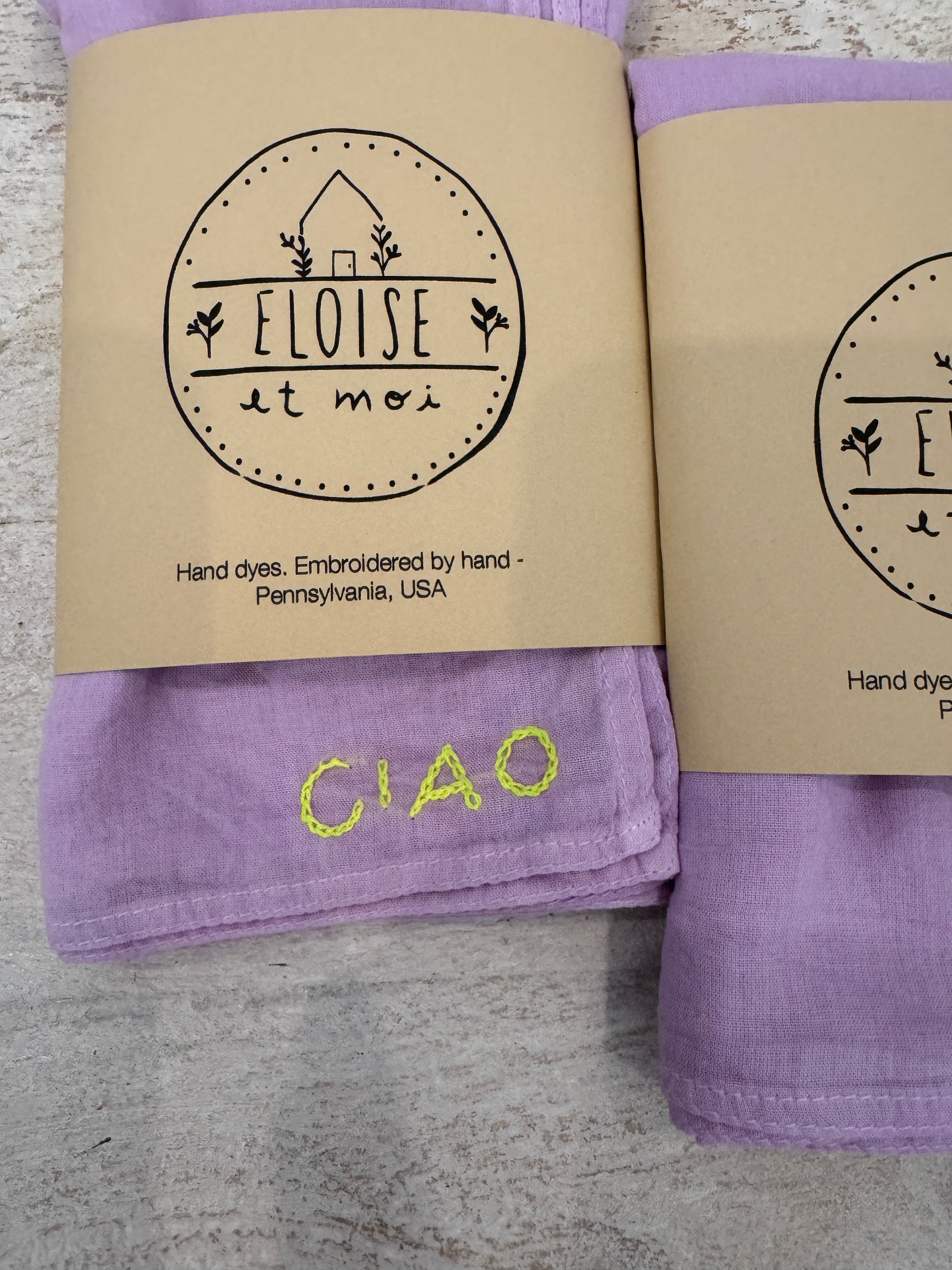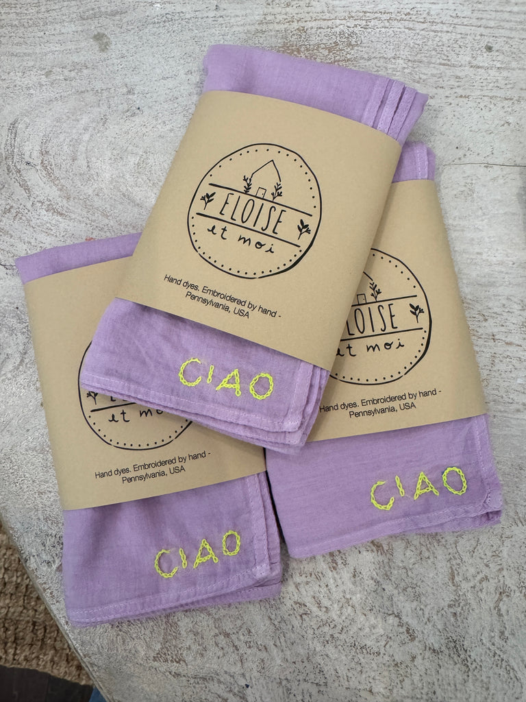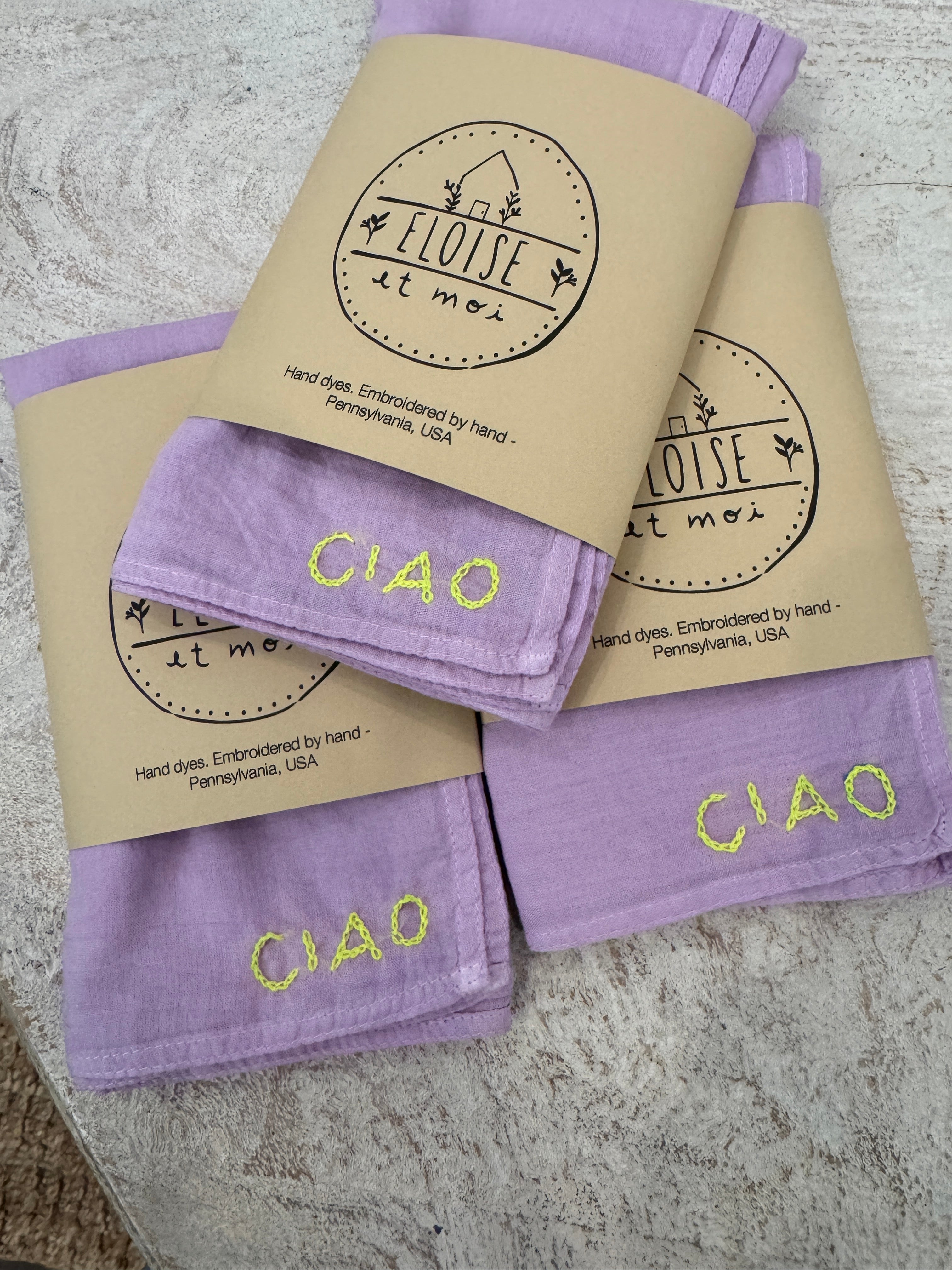You all loved our OUI bandanas and now we have a new version of this staple with CIAO embroidered in different color threads and new color palette.