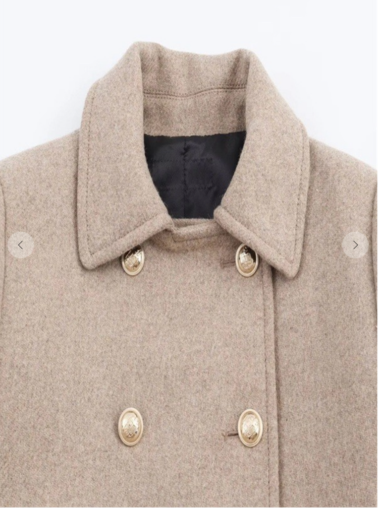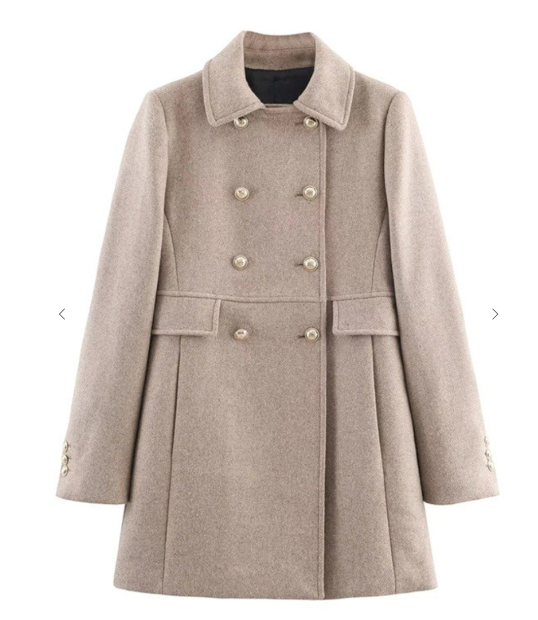 Windsor Double Breasted Gold Button Coat in Oatmeal