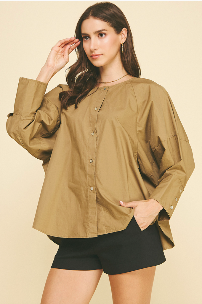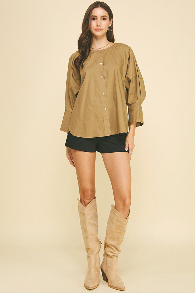 Graham Button Down Blouse in Khaki