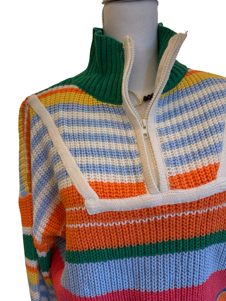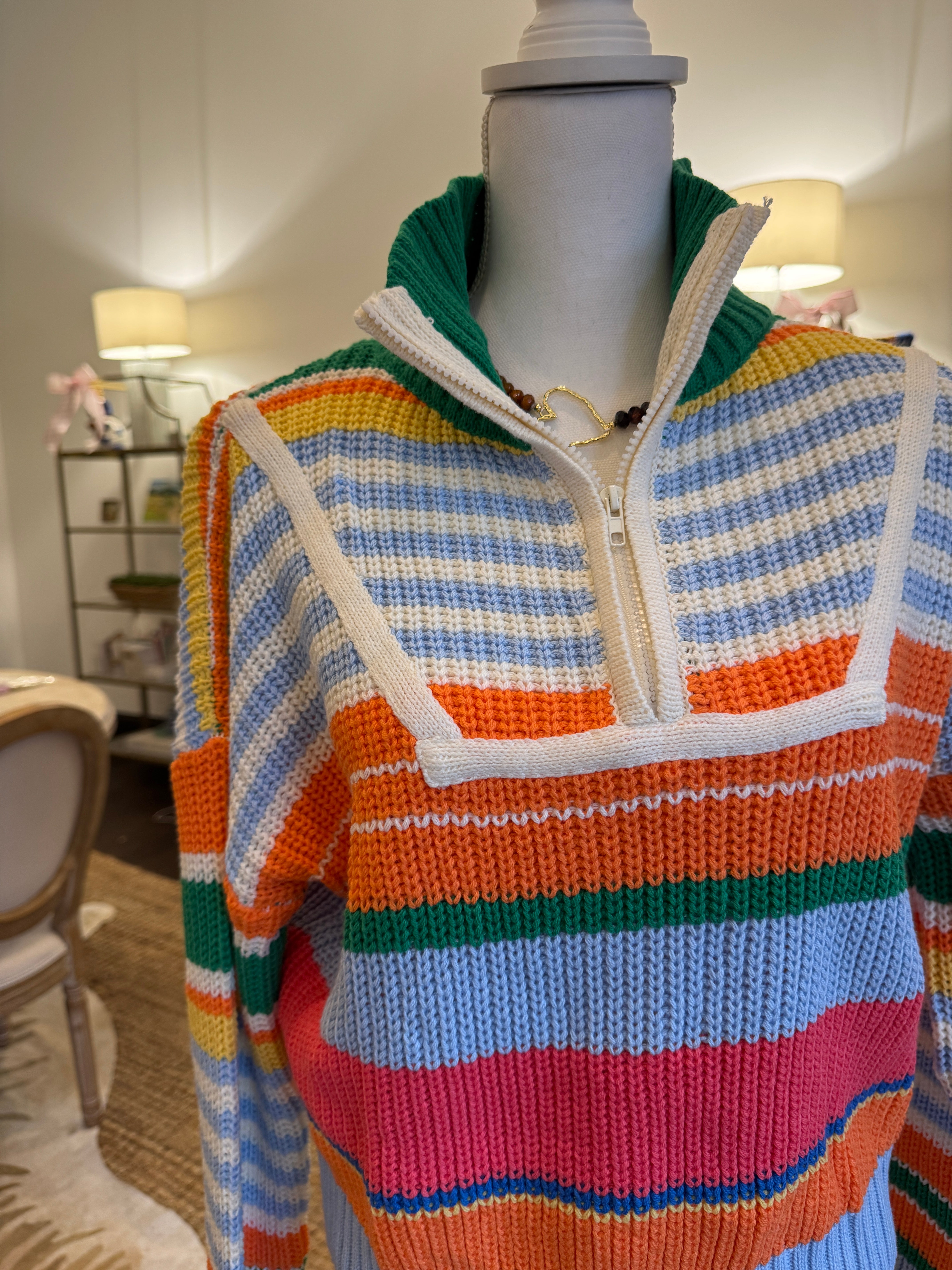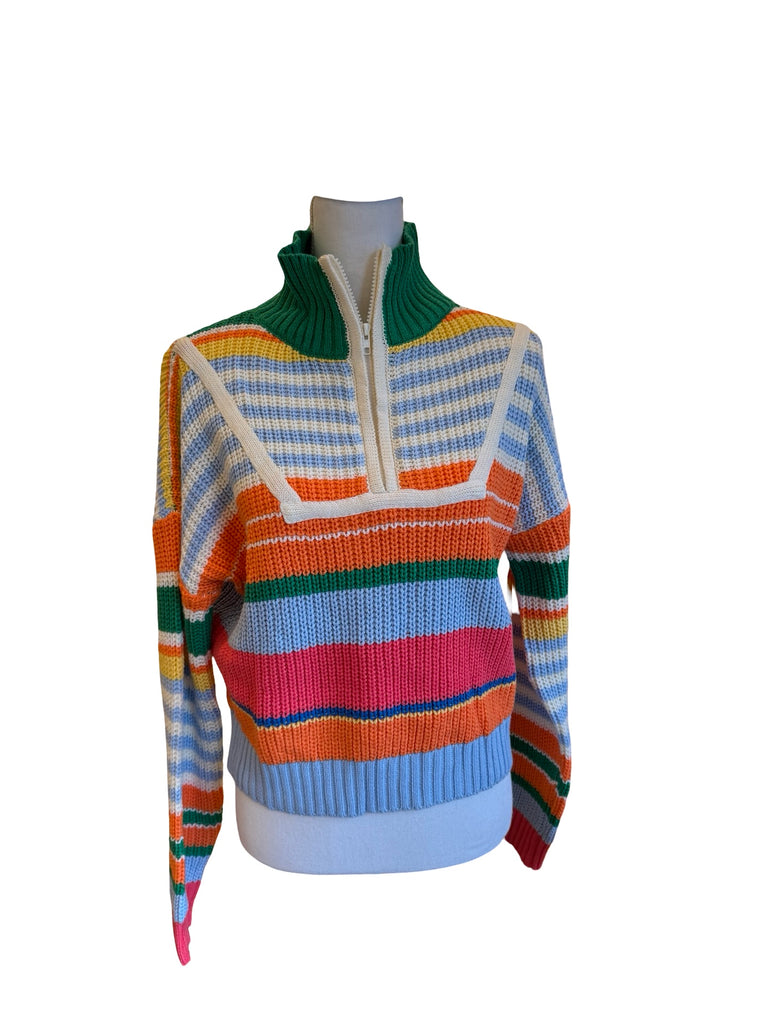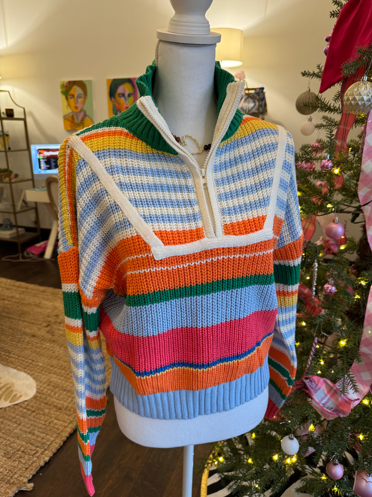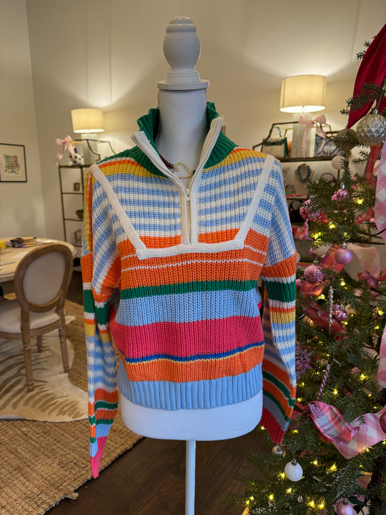 Multicolor Half Zip Striped Sweater