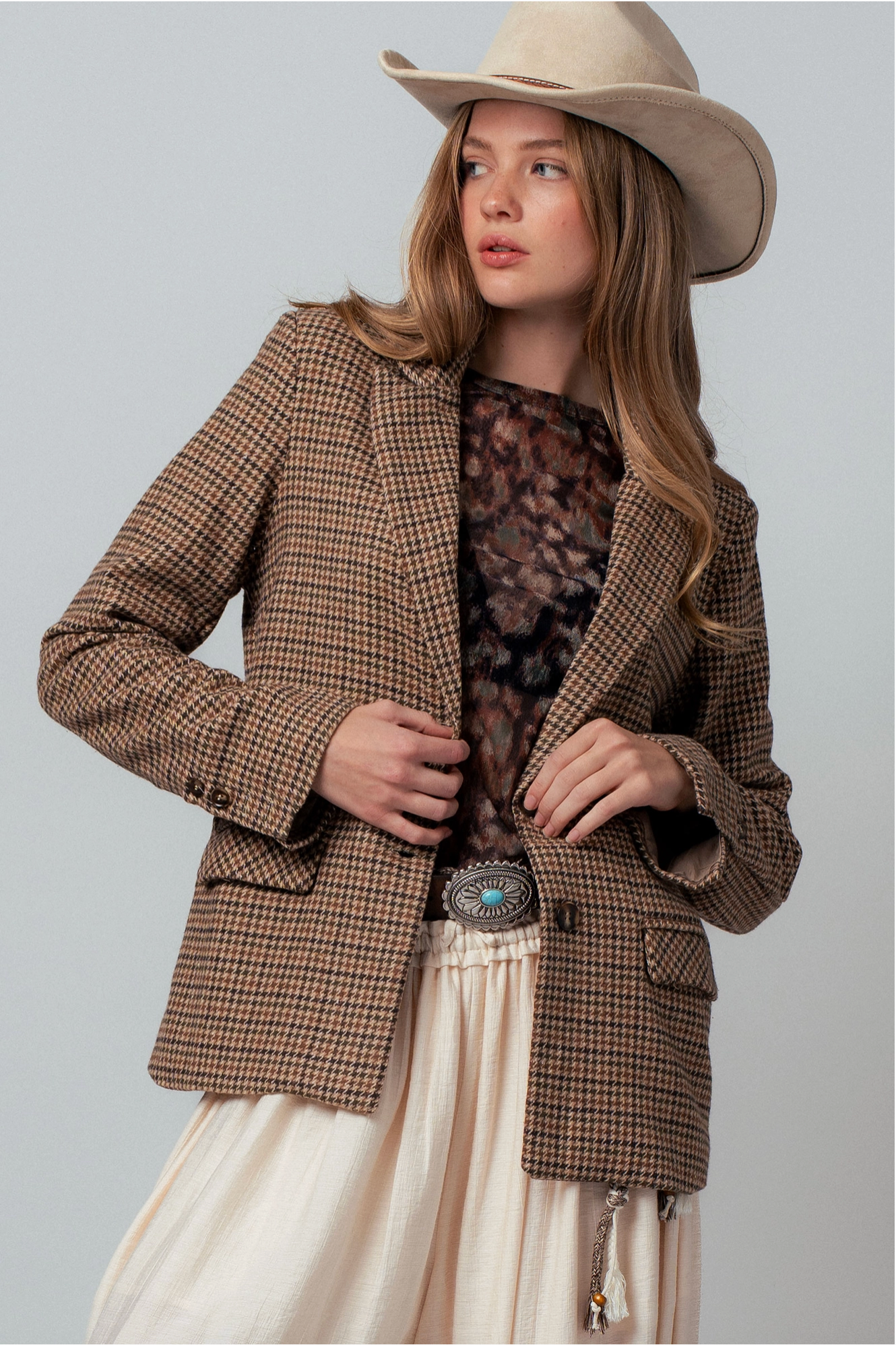 Houndstooth Blazer in Brown