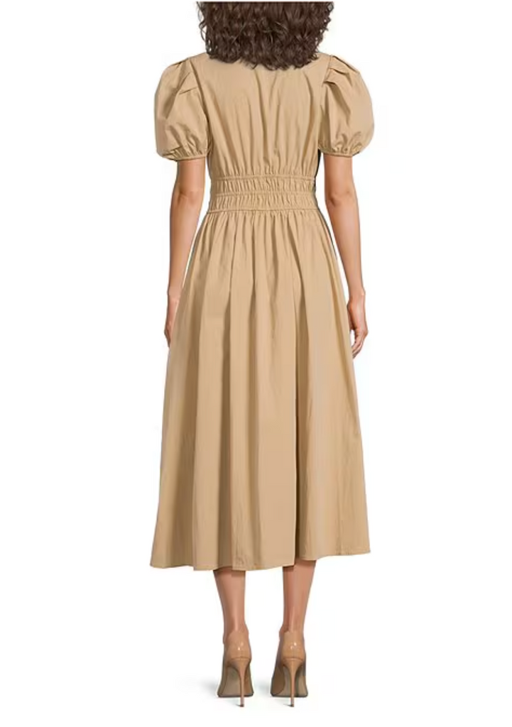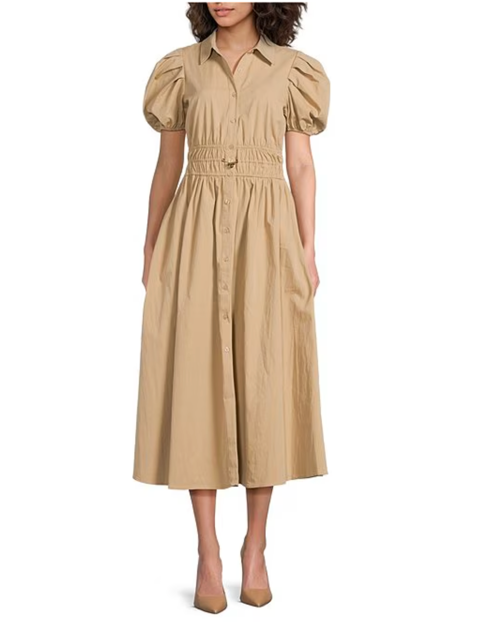 Elevate your everyday wardrobe with this timeless En Saison shirt dress. Designed with a classic button-down collar and charming short puff sleeves, it combines sophistication with effortless style. The button front closure and relaxed shirt dress silhouette offer versatility for any occasion, while the midi length (approximately 49") provides elegant coverage and flattering proportions. Perfect for layering or wearing solo, this piece transitions seamlessly from office to weekend, making it an essential addition to your closet.